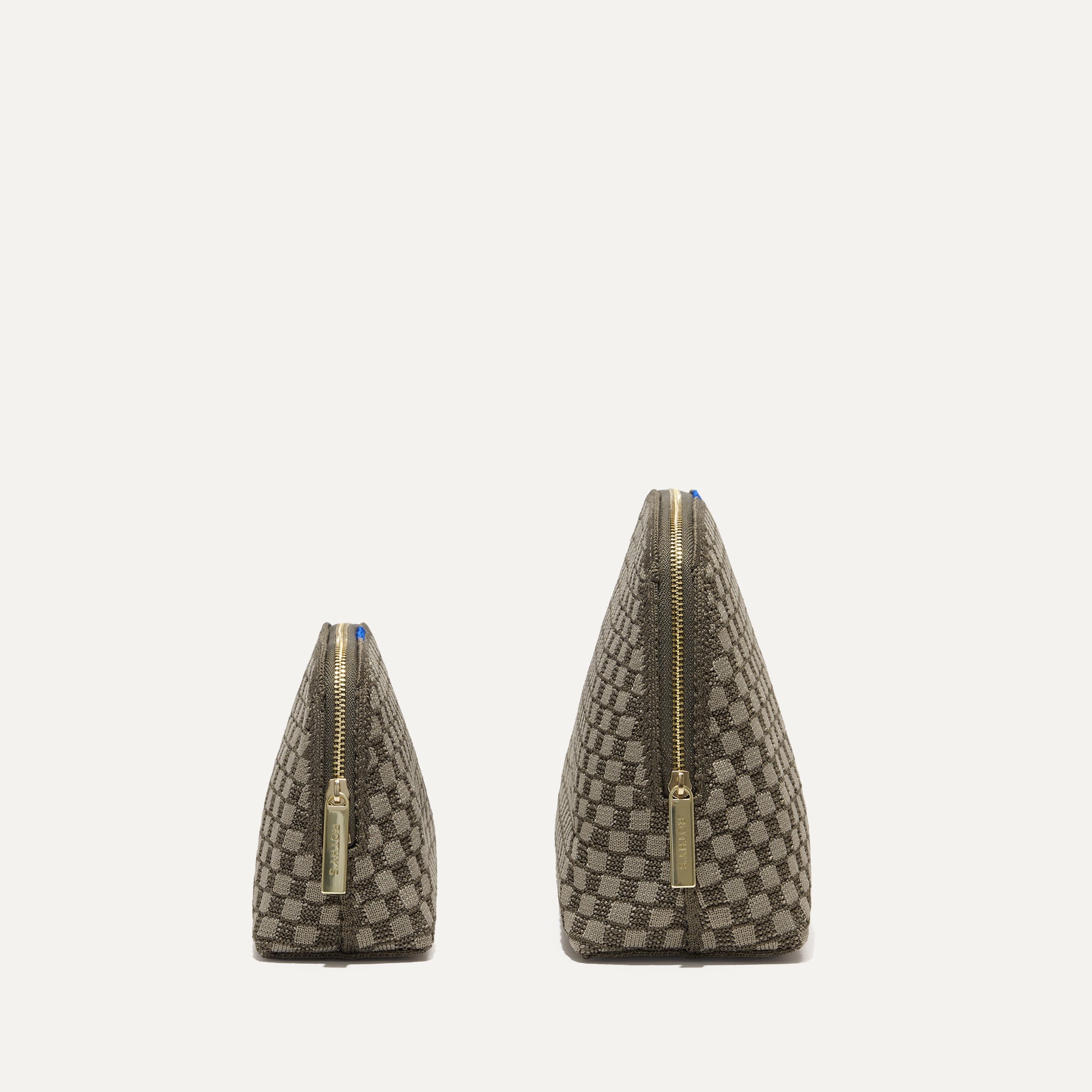 - Lightweight. structured style that keeps its shape. Small and large pouches come in a deep olive basketweave pattern.